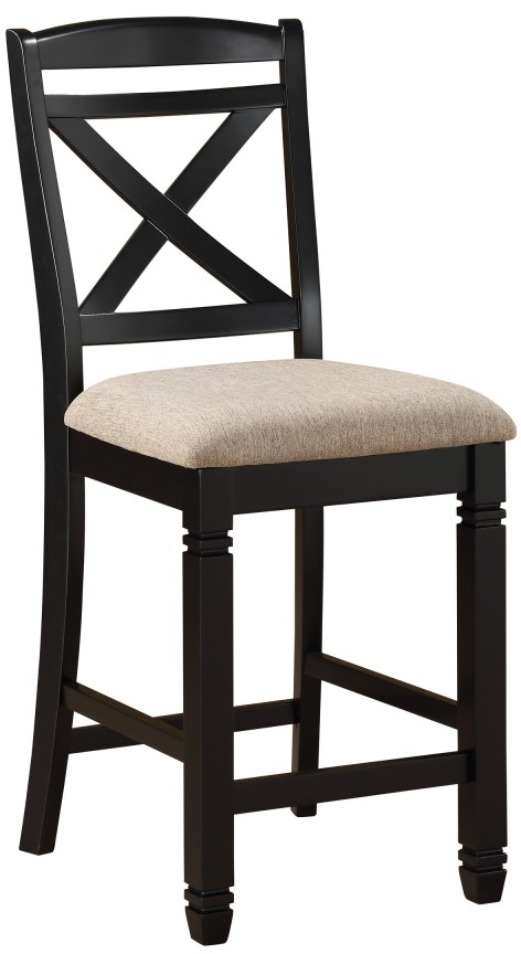 Transitional styling is utilized in the design of the Baywater Collection, creating a stylish addition to your dining space. The wood framed counter height chair is paired with neutral toned fabric seats, and features notched accenting on the legs - all lending to the casual aesthetic that envelopes your home.