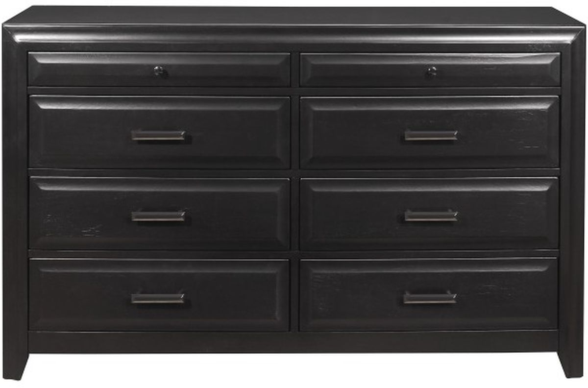 The soft modern styling of the Cordelia Collection creates a look that is a perfect fit for your bedroom. Black bar hardware play subtly against the espresso finish that graces the okume veneer of the dresser.