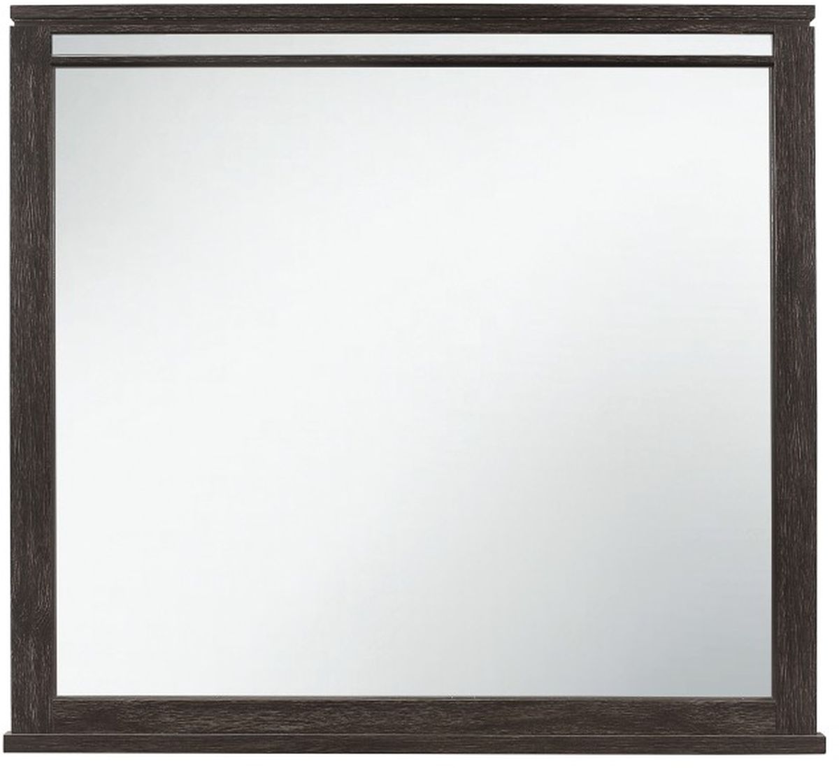 Rustic style is paired with modern accent to create the bold look of the Danridge Collection. Paper laminate veneer presents a realistic wood-look with a mirrored top strip further defining the mirror frame.