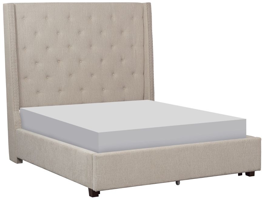 The stately profile of the Fairborn Collection will lend an air of understated elegance to your bedroom. The full mansion headboard features nailhead accent and button tufting creating a modern traditional look that defines your personal style. Beige fabric covers the bed, providing neutral complement to your decorative bedding.Read More