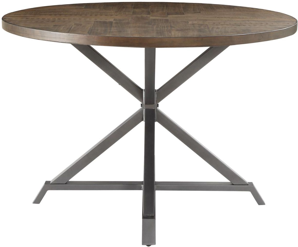 Wood and metal are combined to create the rustic industrial style of the Fideo Collection. Metal framing supports the table and creates the profile of the wood-backed side chairs in this casual dining set. Pine solids and veneer are featured in a herringbone pattern and have been given a burnished finish to complement the gray metal frame.Read More