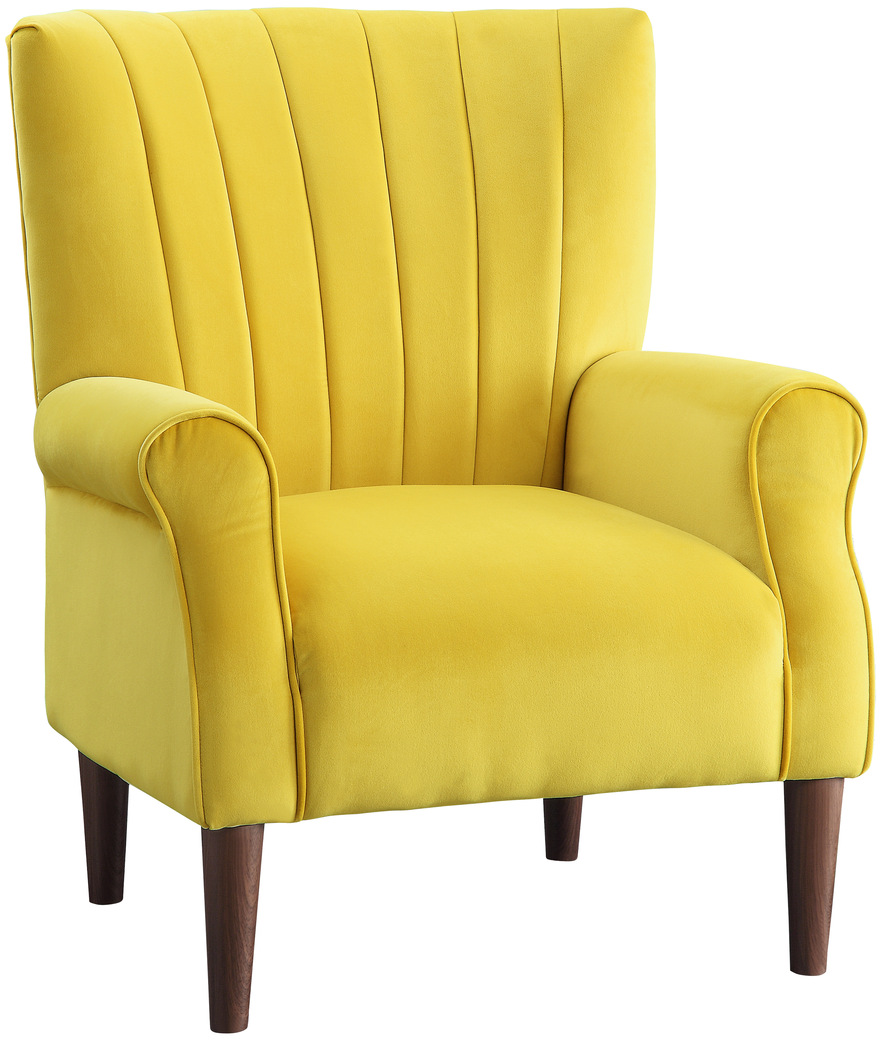 The blend of modern aesthetic and classic design create the Urielle Collection, lending stylish accent to your home’s décor while providing the additional seating that your space needs. The yellow velvet covering lends a bold splash of color.Read More