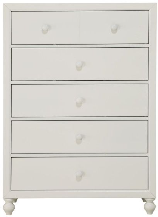 The modern farm house serves as inspiration for the design of the Wellsummer Collection. Offered in white or gray finish for complete decorative versatility in your bedroom, this fresh look will satisfy your love of country styling. Ball finials top the bed posts while turned feet provide support to all pieces in the collection. Wood knob hardware centers the drawer fronts solidifying the trend forward transitional look.