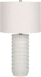 Introducing the perfect combination of style and function with this 28"H table lamp. The cream polyresin, textured cylinder base is complimented with a chic ivory linen shade and finished with a gold finial on top.Read More