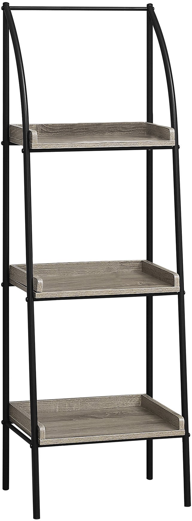 Ladder shelf format has lipped sides to keep your decor in their places