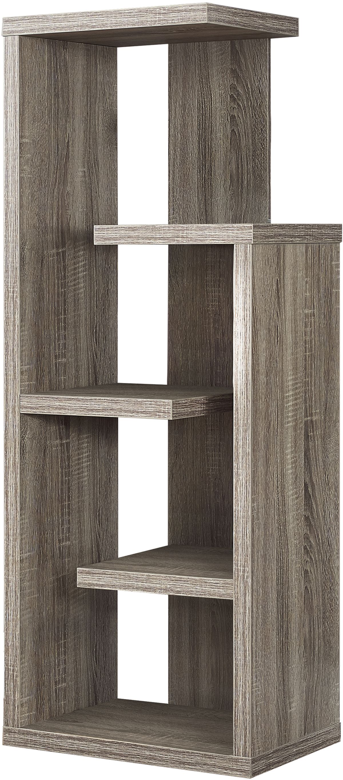 Enhance your living space with this beautifully crafted, dark taupe, wood-look display unit. Featuring clean lines and 5 open concept shelves perfect for displaying your most treasured decorative pieces this modern unit is sure to liven up your living room, entryway, family room, den, or office space. Your books, framed photos and other accent pieces have never looked so good!