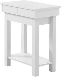 Add that extra touch to a room with this versatile side accent table in a smooth laminated white finish. This end table with a simple contemporary/transitional design in compact form provides ample storage space. Place a plant, a decorative object, or books on the spacious tabletop which slides open to reveal a hidden storage drawer to keep tv remotes, a tablet, or extra paper and pens within easy reach.Read More