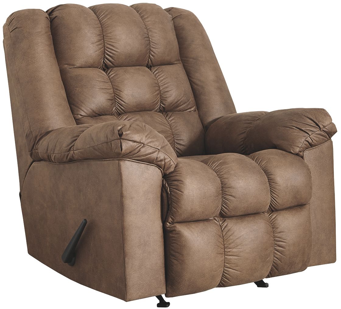This rocker recliner, upholstered in faux leather, features generous seating with heated massage and extra-cozy cushions. And you deserve it!