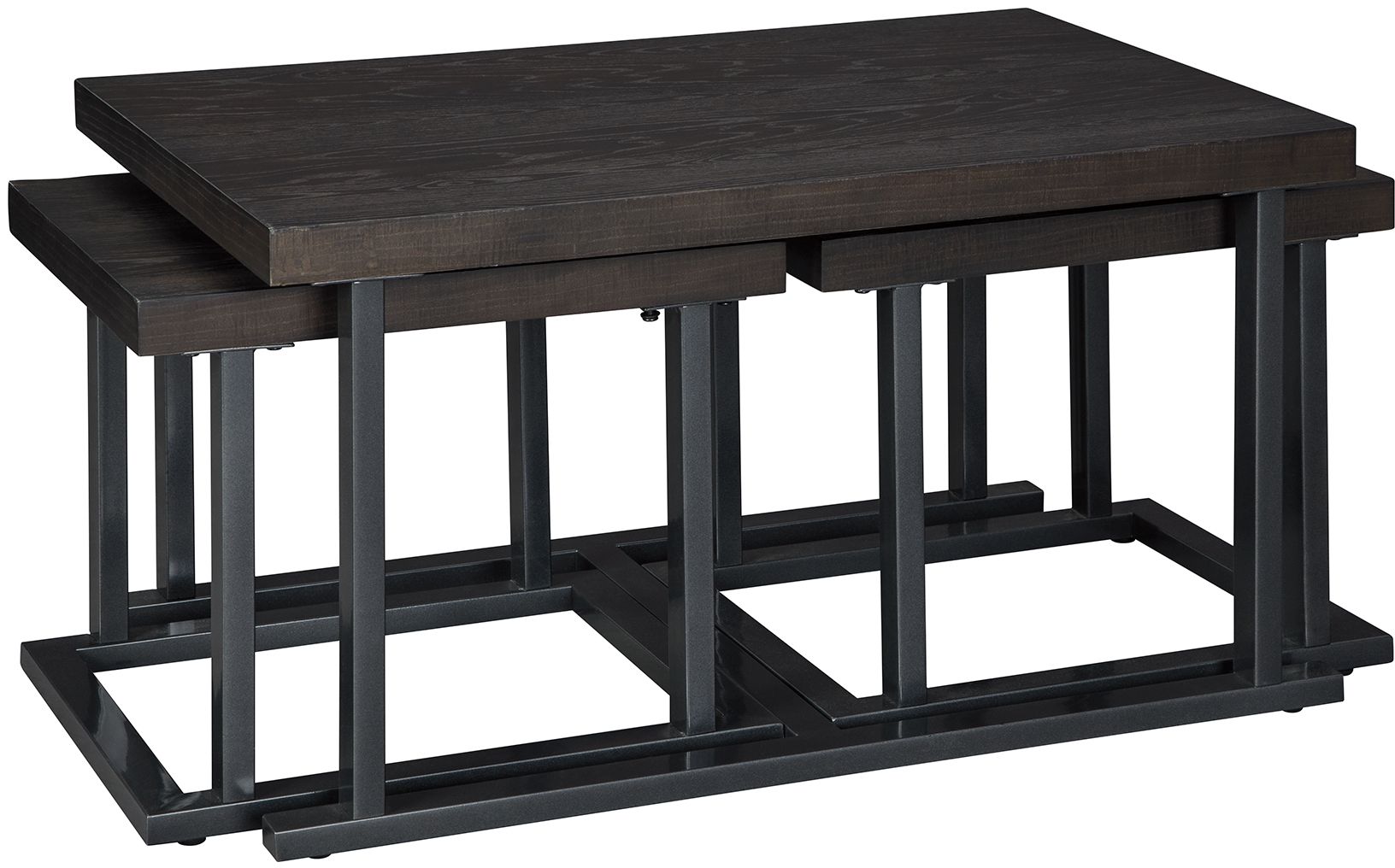 Dual (2) bunching tables—or “brunching” stools—neatly tuck under the Airdon cocktail table to easily accommodate for any event. The wire-brushed wood finish and bronze metal framing are a harmonious blend of urban and contemporary design for a clean statement of style.