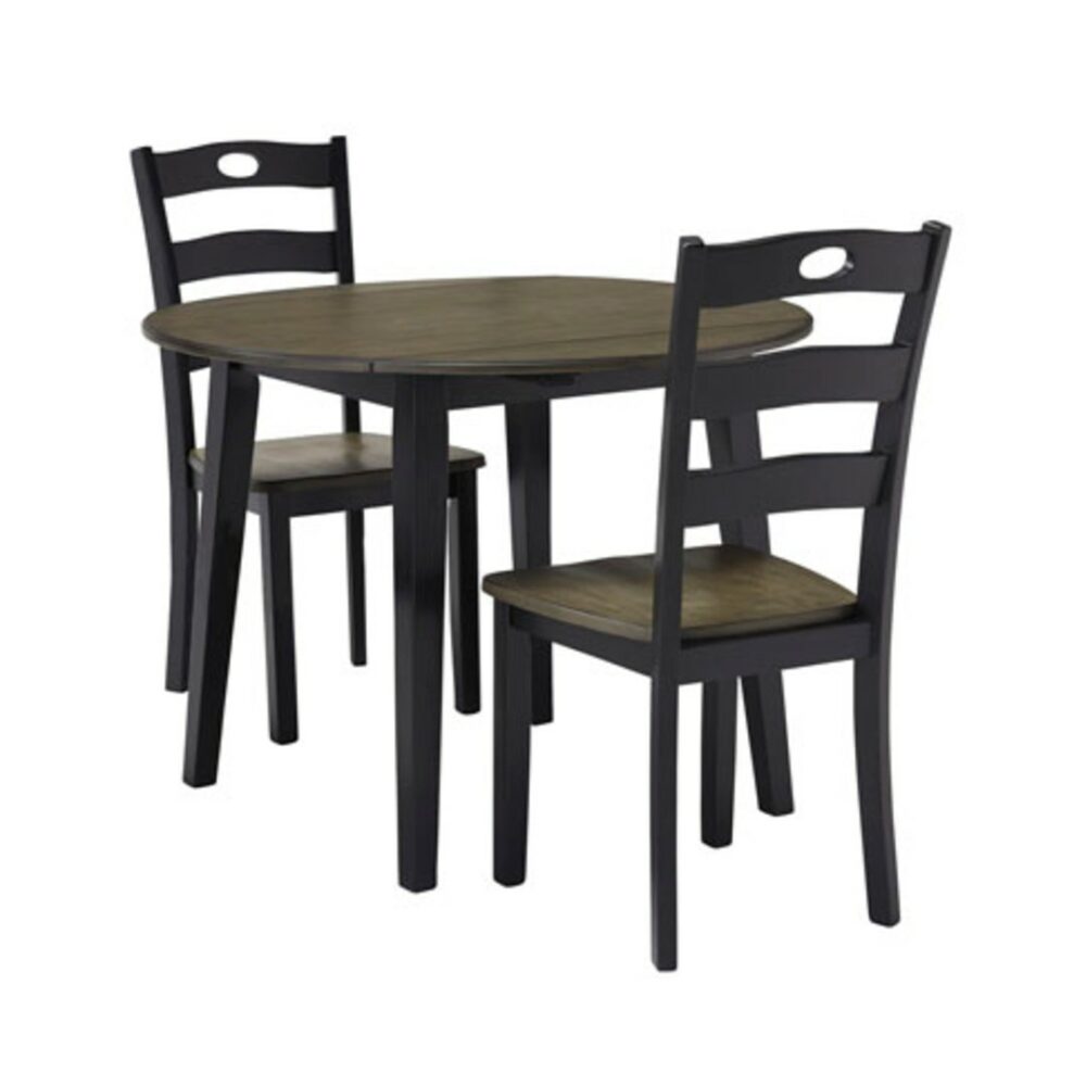 This Froshburg 3-piece dining set has everything you need for an elegant experience. With a round table, 2 drop-leaves and 2 chairs, this attractive two-tone set is an ideal setting to host all your events.